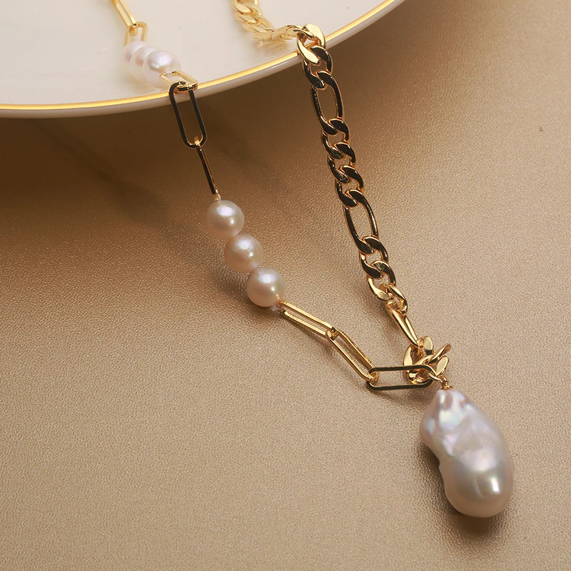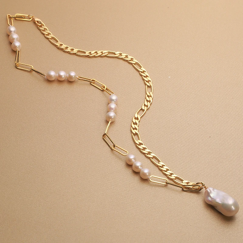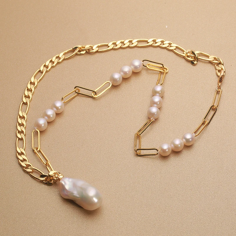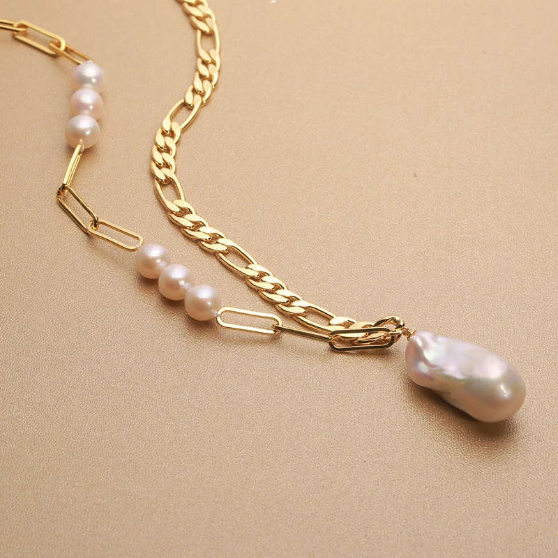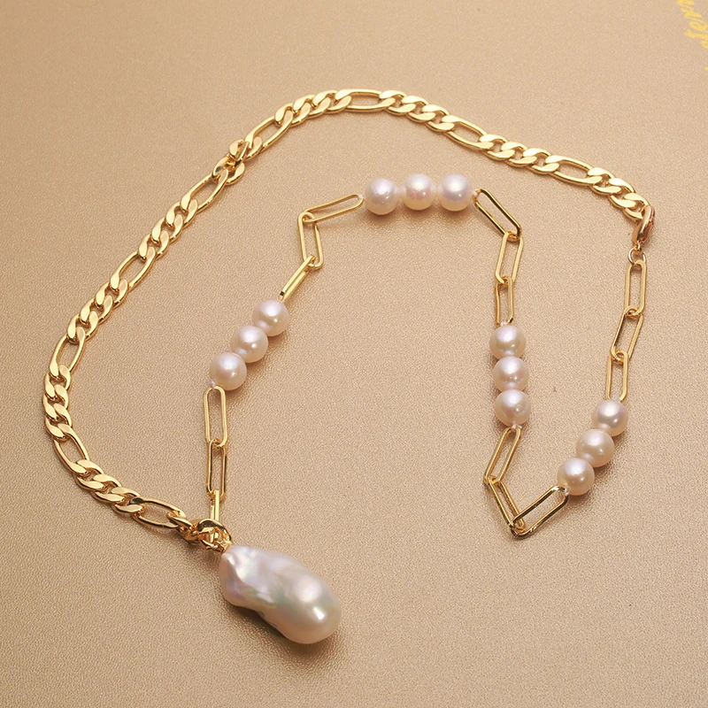 14k Gold filled Retro style Natural Freshwater Pearl pendant oversized Baroque Necklace 15-25mm unique personality 45cm NAB