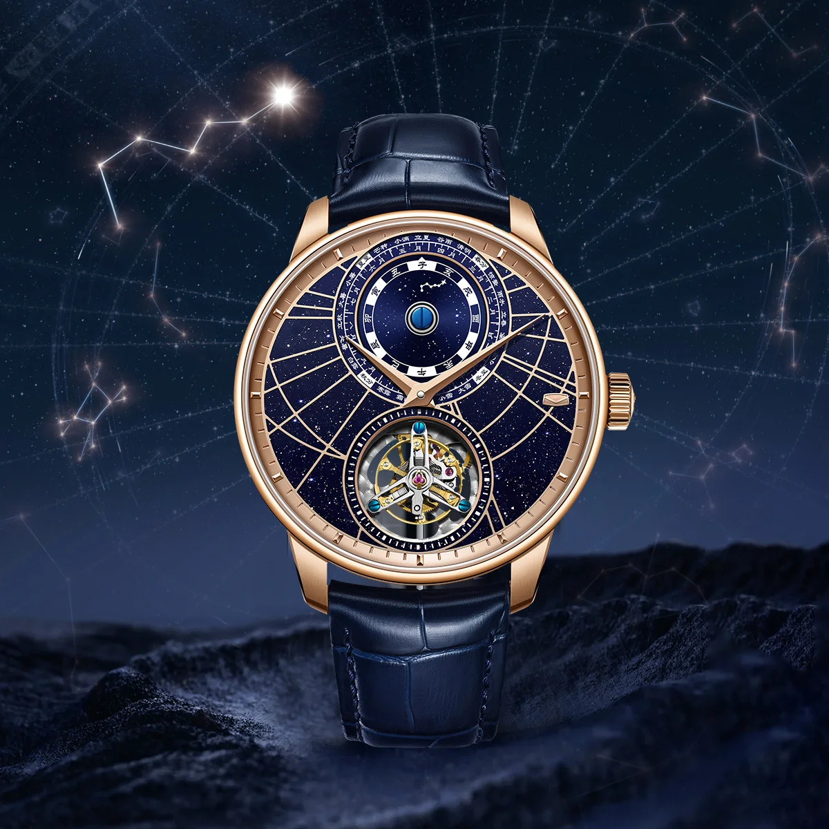 Seagull Master Series Off-Center Tourbillon Watch Starry Sky Chinese Astronomical Calendar Manual Winding Mechanical Watch 8843G